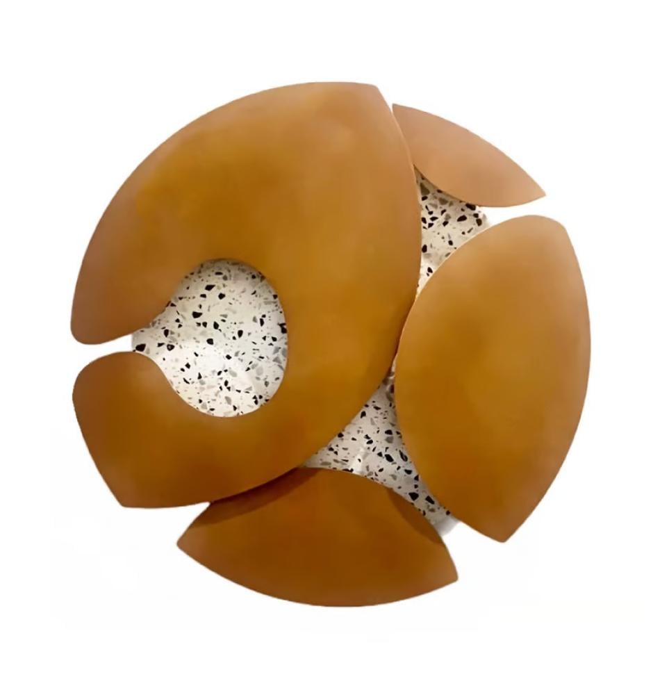 قطعة فنية دائرية مصنوعة من حجر الترافنتين الطبيعي بلونه البيج الدافئ، تُضفي لمسة من الفخامة العضوية على أي مساحة داخلية. يتميز التصميم بتفاصيل دقيقة وسطح ناعم يبرز الجمال الطبيعي للحجر.